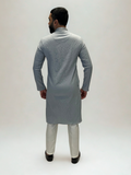 A classic reimagined — our Silver Grey Thread Self-Jaal Kurta Set is an ode to quiet luxury and subtle craftsmanship. Featuring a soft silver-toned hue adorned with intricate woven jaal texture and thread detailing, this look offers timeless sophistication for modern occasions.