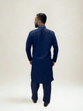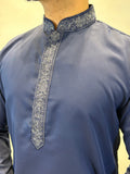 Step into refined tradition with our Navy Embroidered Kurta Shalwar Set. Featuring elegant embroidery on the collar and placket, this ensemble combines classic tailoring with artisanal detailing, making it perfect for formal gatherings and festive occasions.