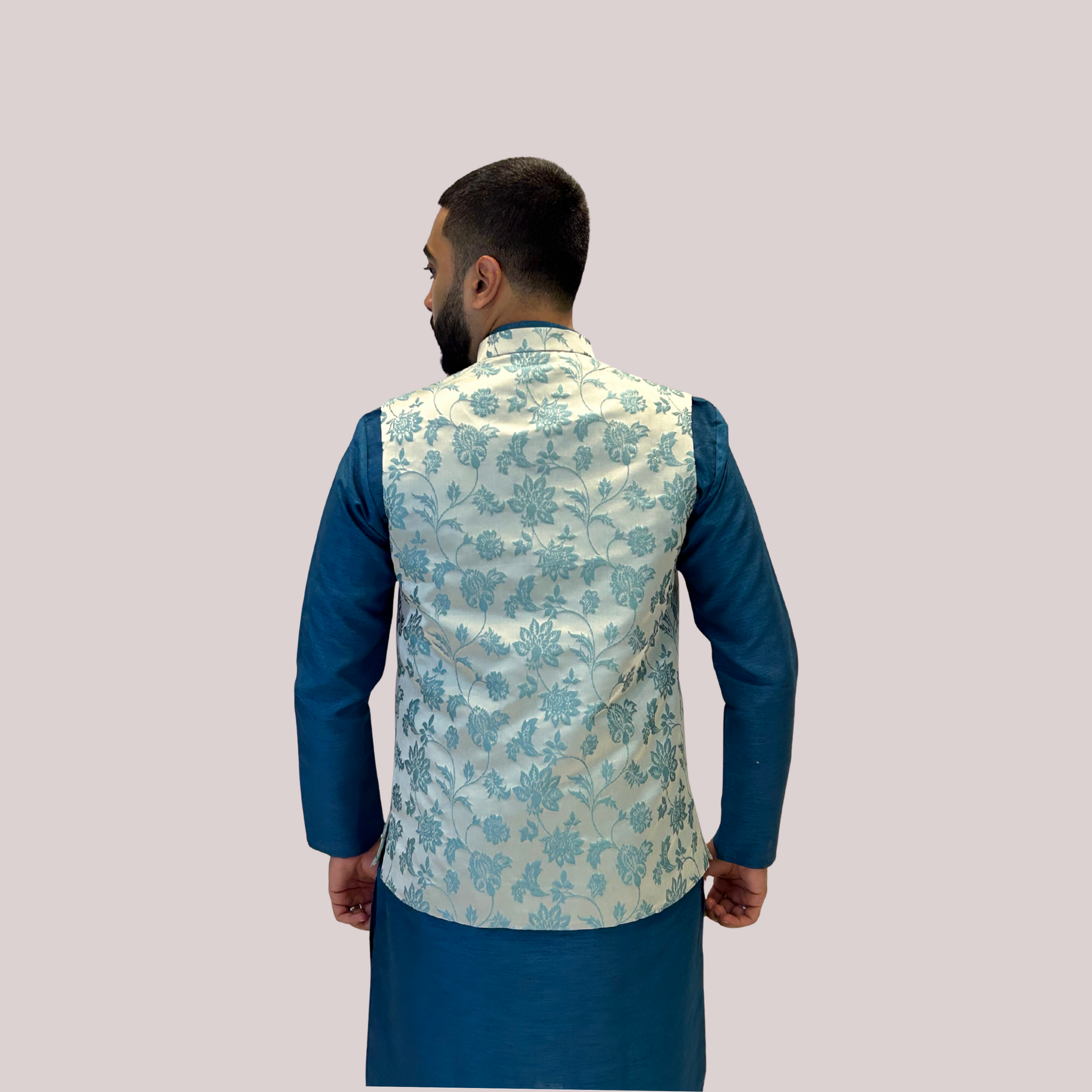 Aqua Blue Brocade Nehru Jacket