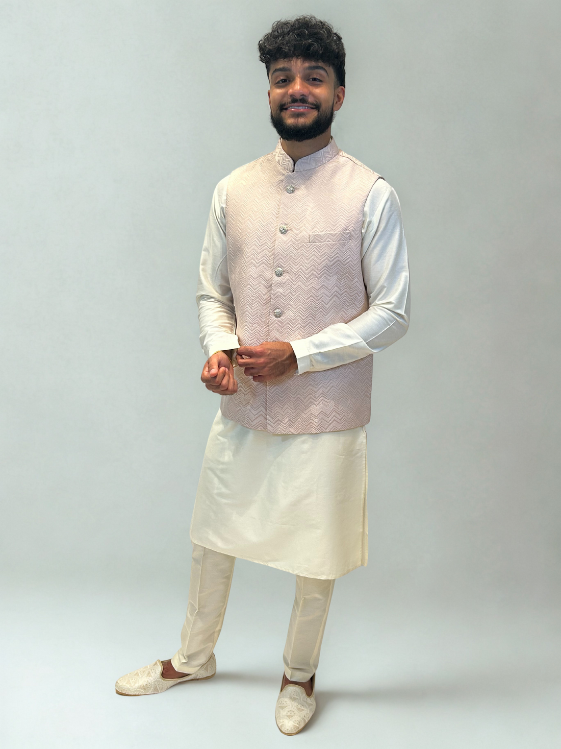 Blush Pink Chevron Nehru Jacket