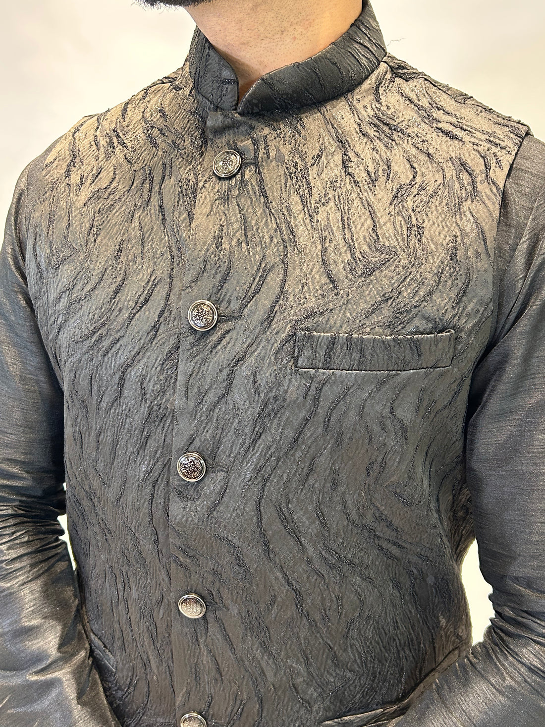 Black Patterned Nehru Jacket