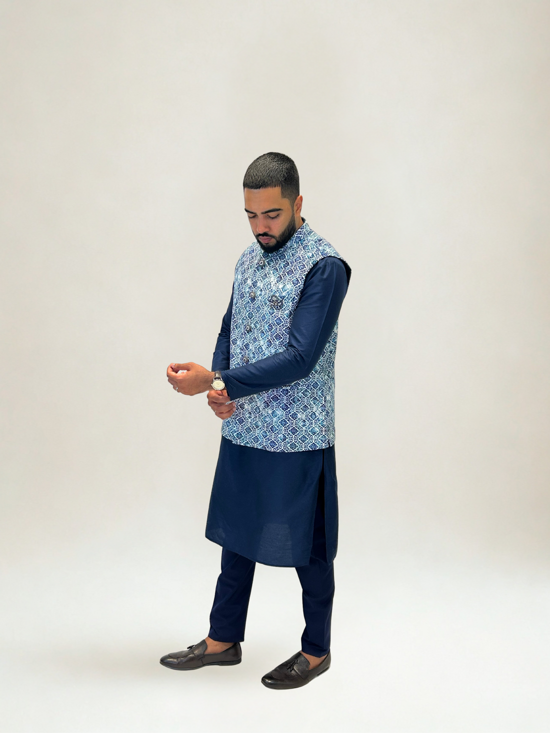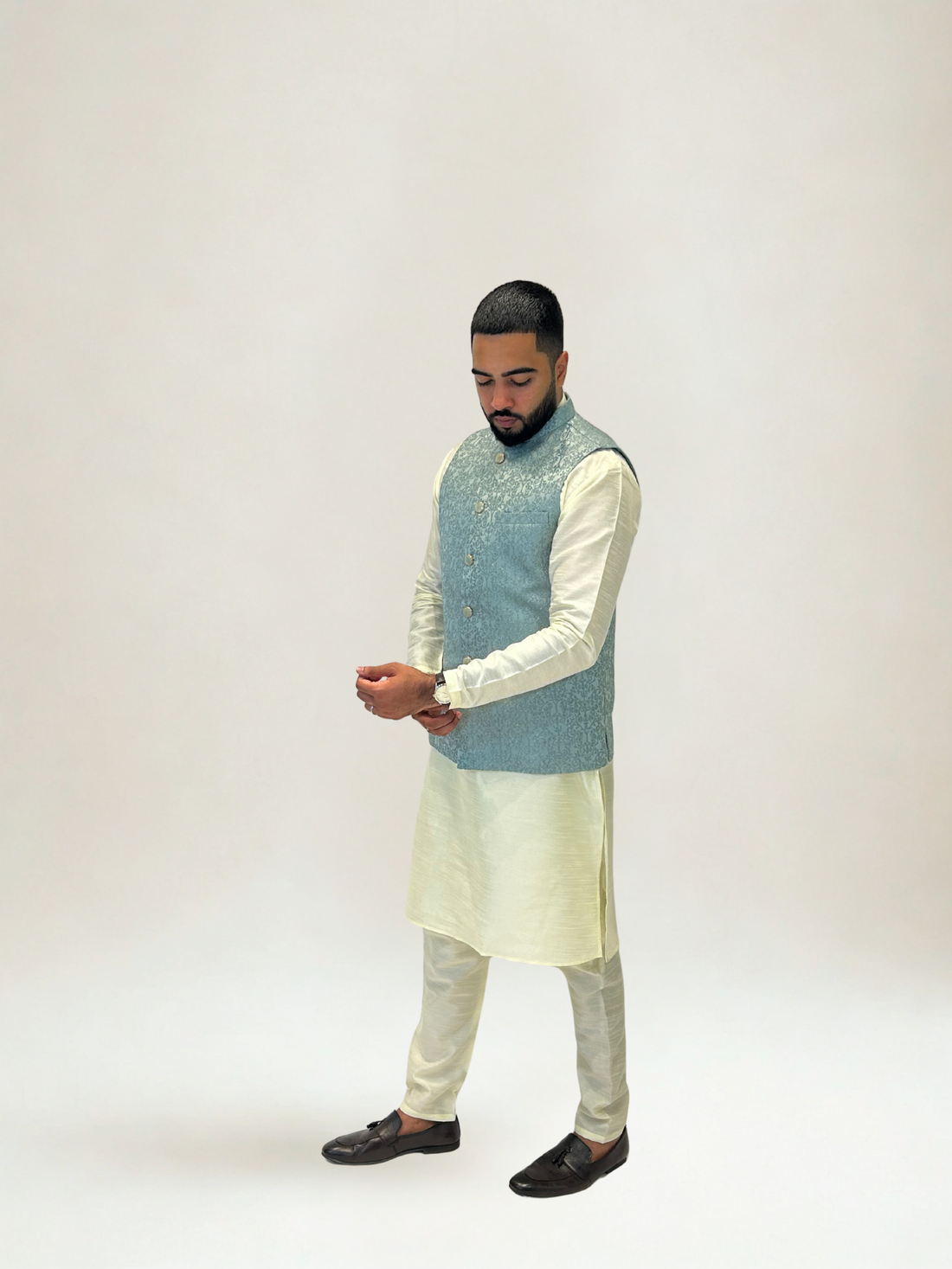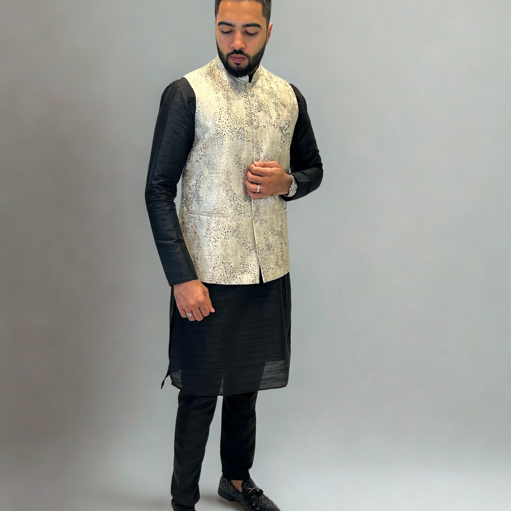 Complete your wedding look with our exclusive Nehru Jacket collection — a symbol of refined masculinity and timeless style. Designed to pair seamlessly with kurtas or shirts, each jacket features rich fabrics, handcrafted detailing, and an impeccable fit that enhances your silhouette. Whether you’re the groom, groomsman, or guest, the Nehru Jacket adds a touch of royal sophistication that perfectly balances tradition and trend.
