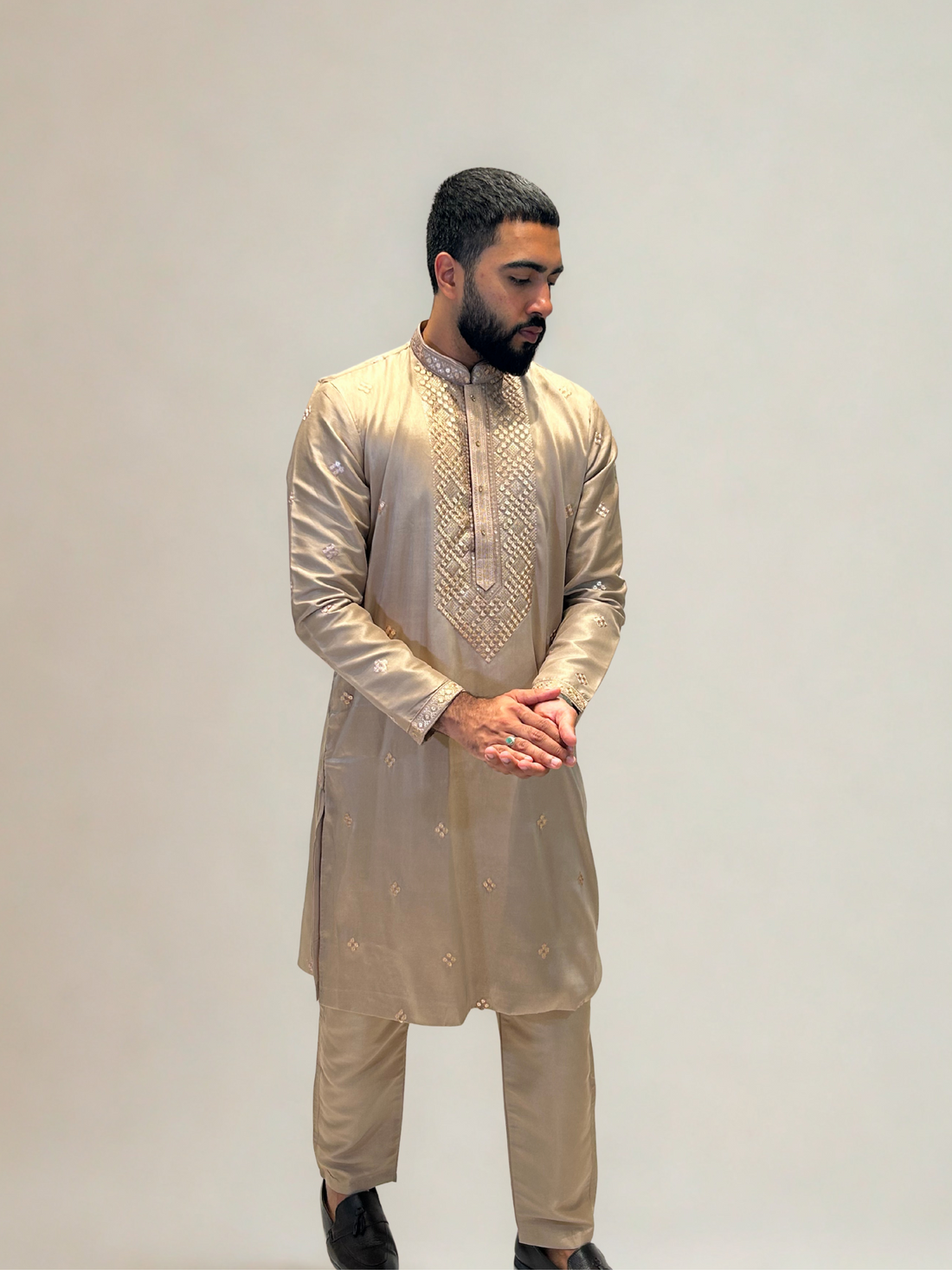 Beige Mirror Embroidered Kurta Pajama Set