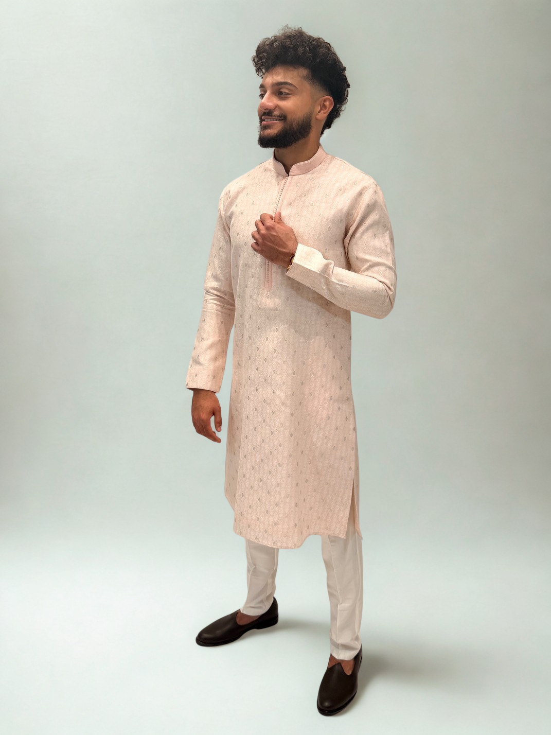 Blush Pink Brocade Kurta Set