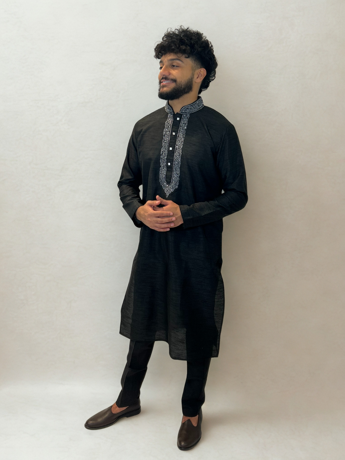 Black and Silver Embroidered Kurta Set
