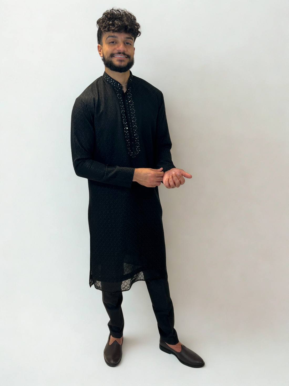 Black Sequin Embroidered Textured Kurta Set