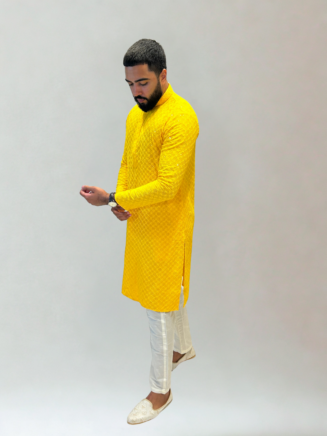 Yellow Thread and Sequin Embroidered Kurta Set
