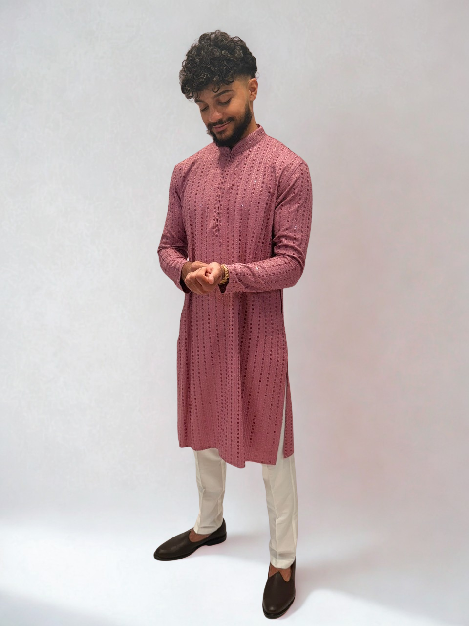 The Rose Pink Self Sequined Kurta Set embodies refined charm and festive sophistication. Designed in...