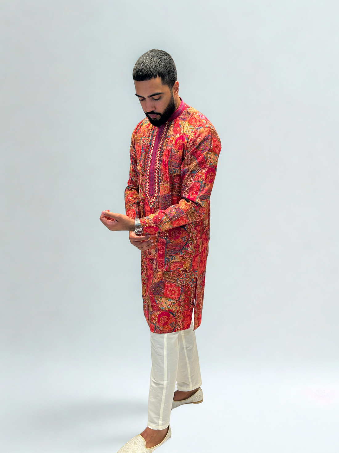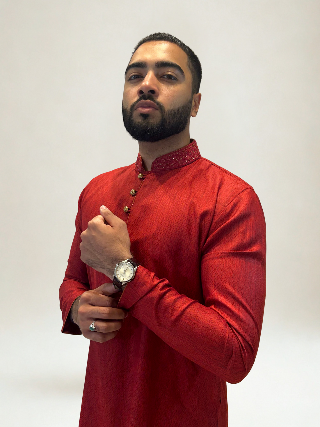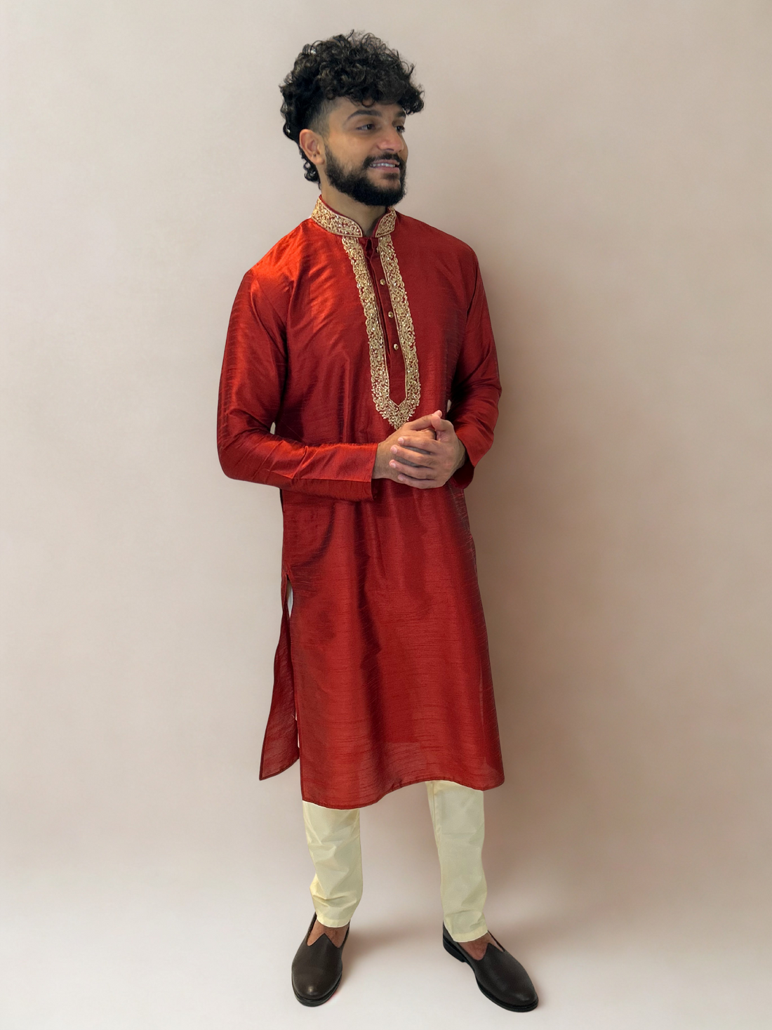 The Red and Gold Embroidered Kurta Set captures the essence of regal elegance. With a...