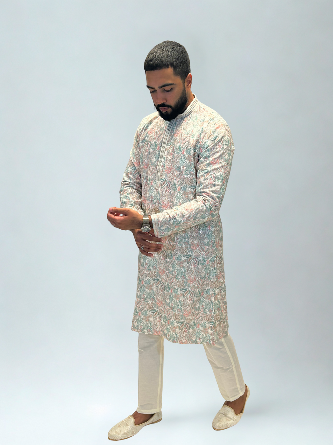 Graceful and understated, our Pastel Floral Embroidered Kurta Set is a celebration of fine detail...