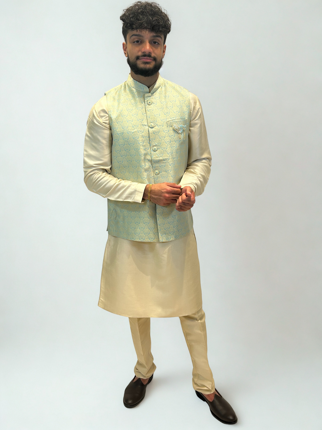 Mint Gold Brocade Nehru Jacket