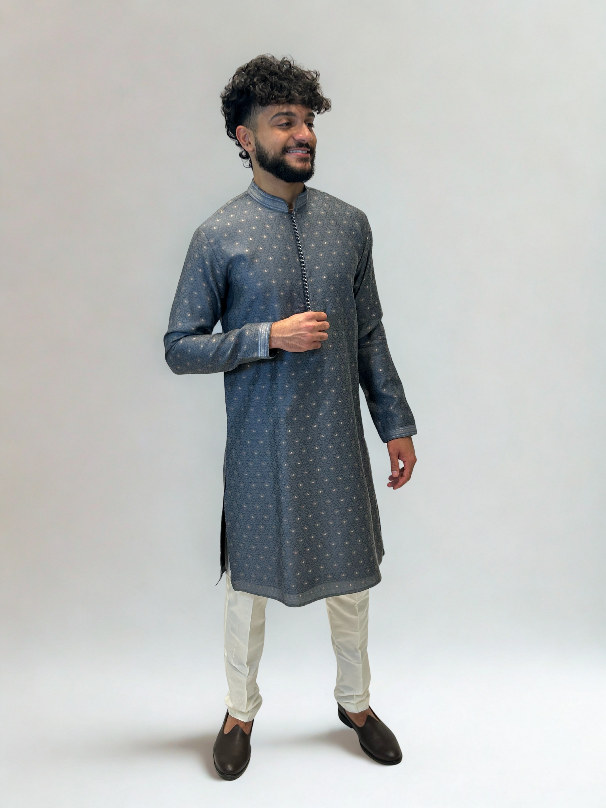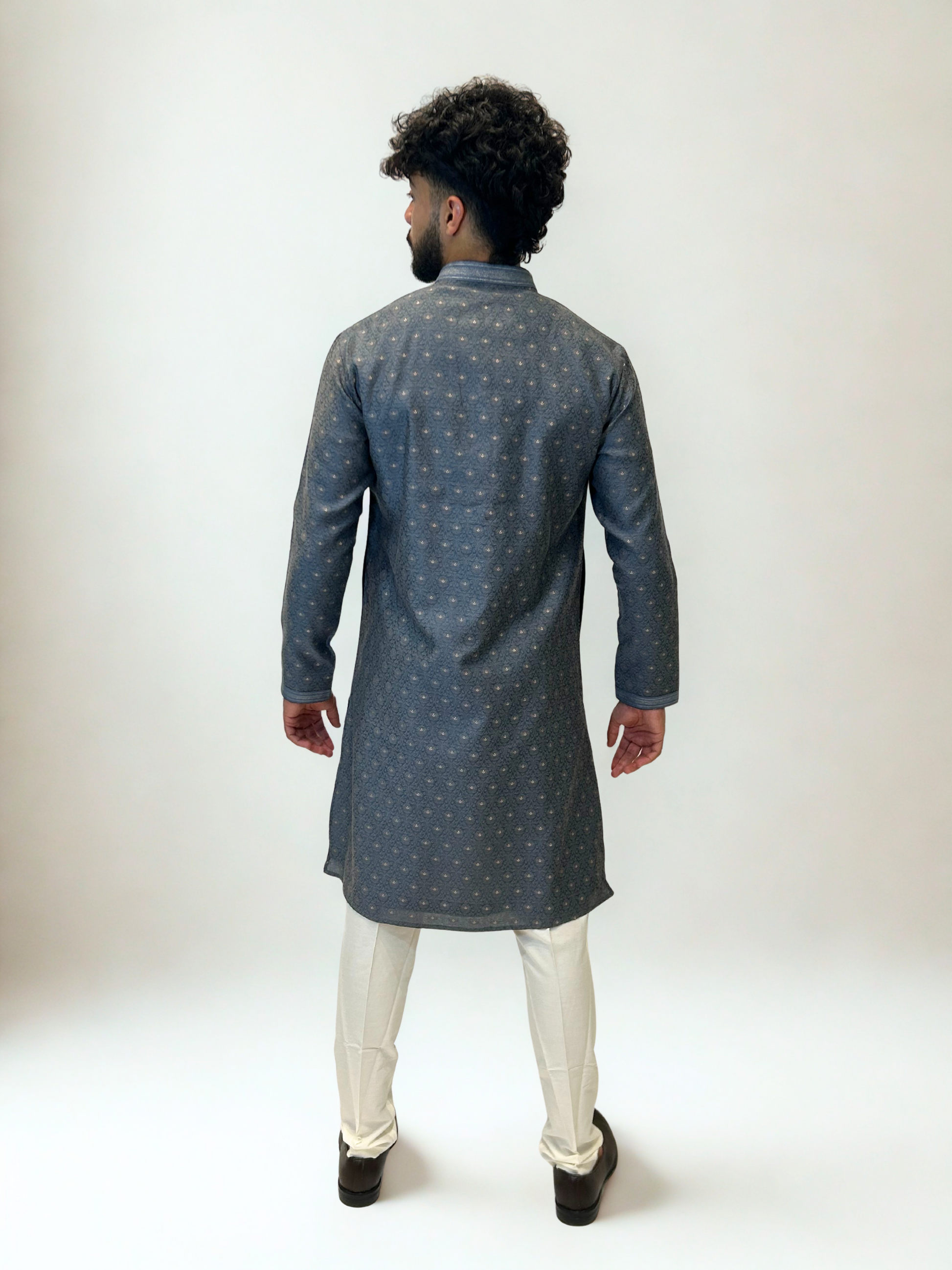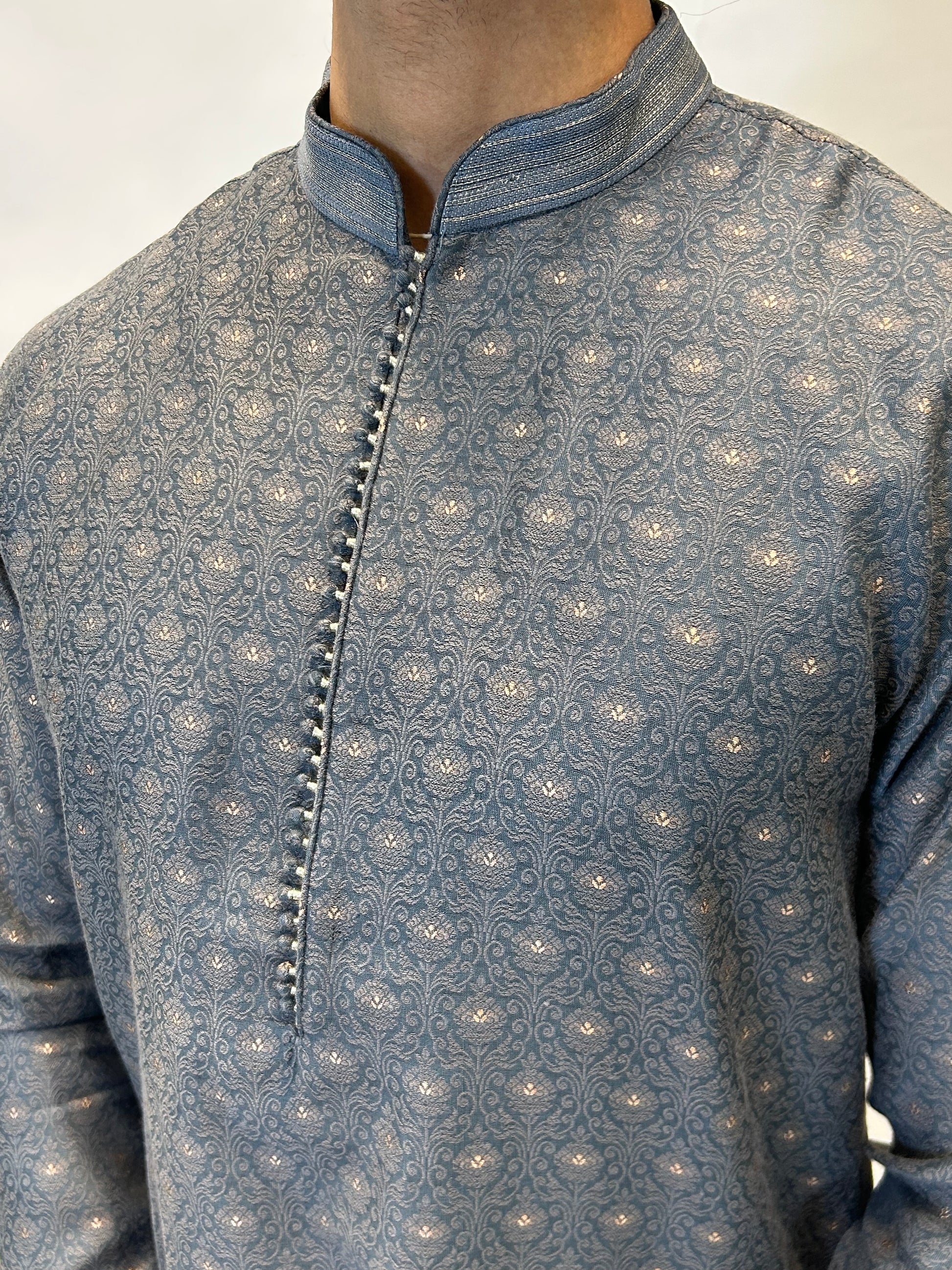 Steel Blue Brocade Kurta Set