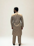 Step into timeless elegance with our Champagne Embroidered Kurta Set. This refined ensemble features a soft champagne-gold hue, complemented by delicate embroidery and a subtle sheen that makes it perfect for weddings, festive occasions, or formal events.