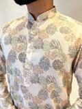 Ivory Pastel Printed Linen Kurta Set