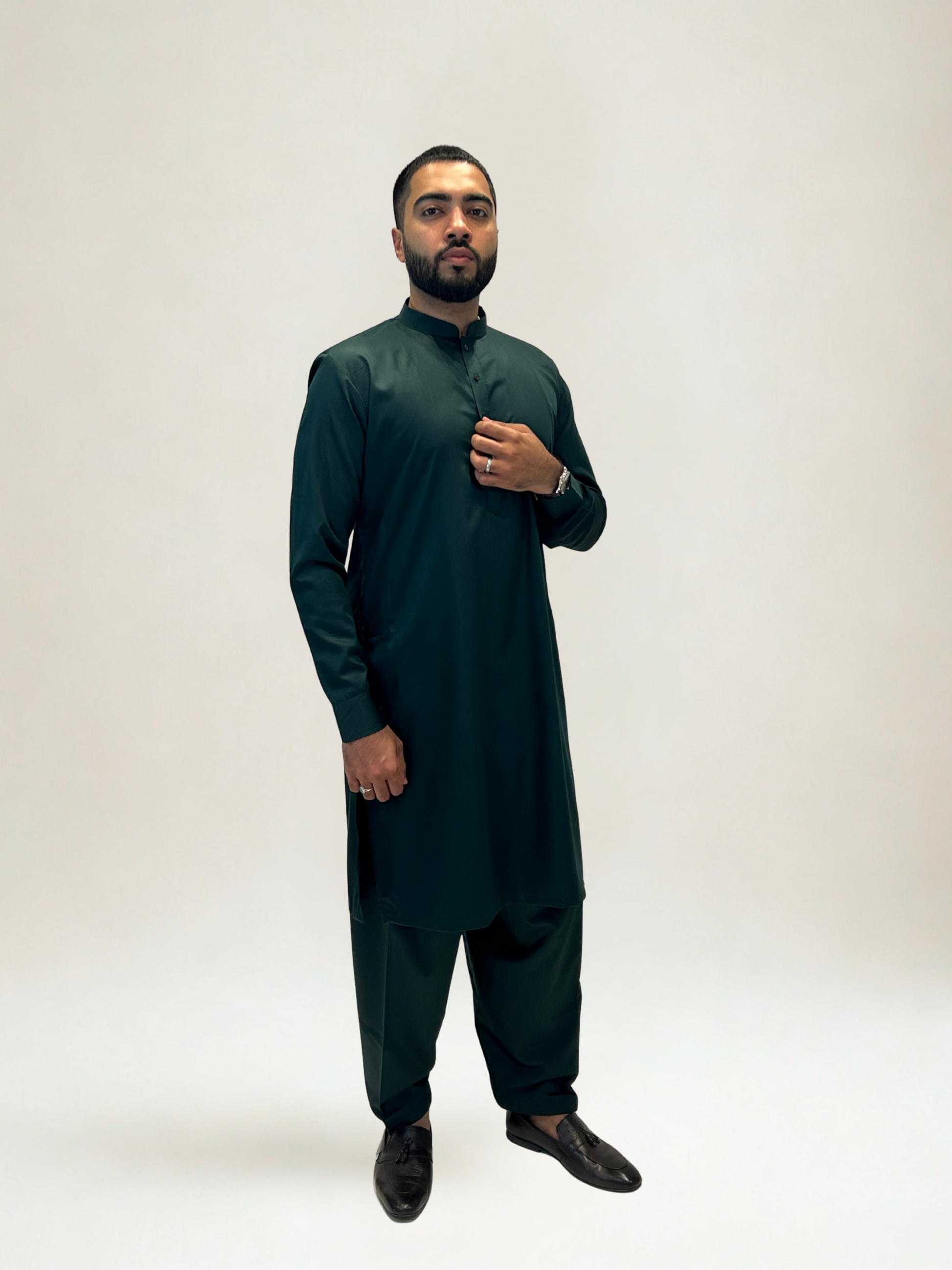 Step into refined tradition with our Green Kurta Shalwar Set. Designed in a rich green hue, this classic ensemble blends timeless tailoring with everyday comfort. The straight kurta paired with a matching shalwar offers a clean, versatile silhouette ideal for both festive and formal occasions.