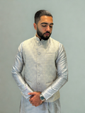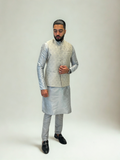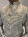 Silver Grey Patterned Nehru Jacket