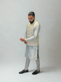 Pair with an all-grey kurta pajama set for a monochrome look or contrast with deep navy or black for added depth. Finish with classic mojaris or polished loafers to elevate your outfit.