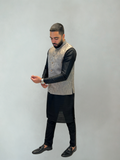 The jacket should fit snugly around the shoulders and chest, with the front closure sitting flat. Ensure the length aligns well with the kurta for a balanced, structured appearance.