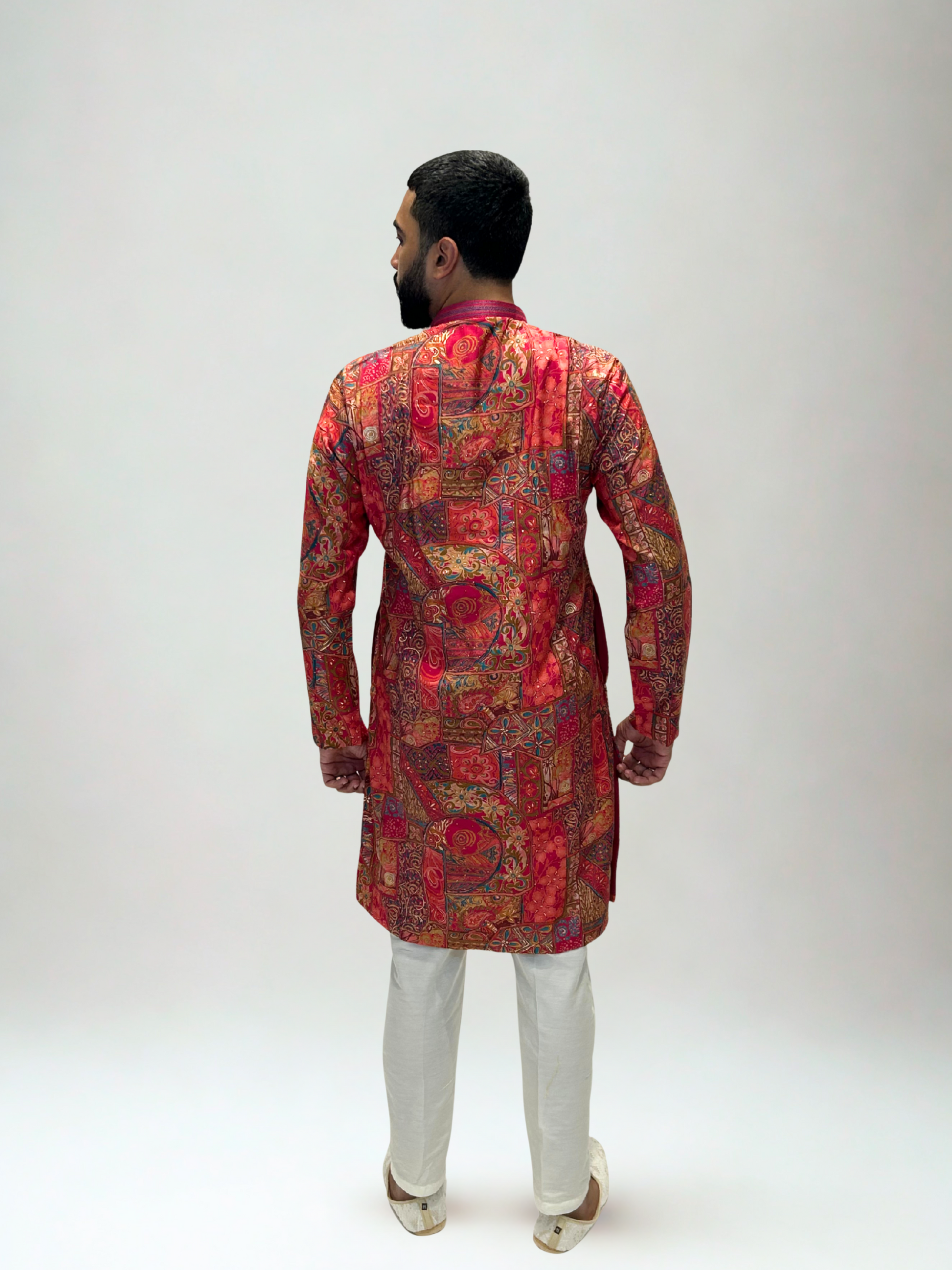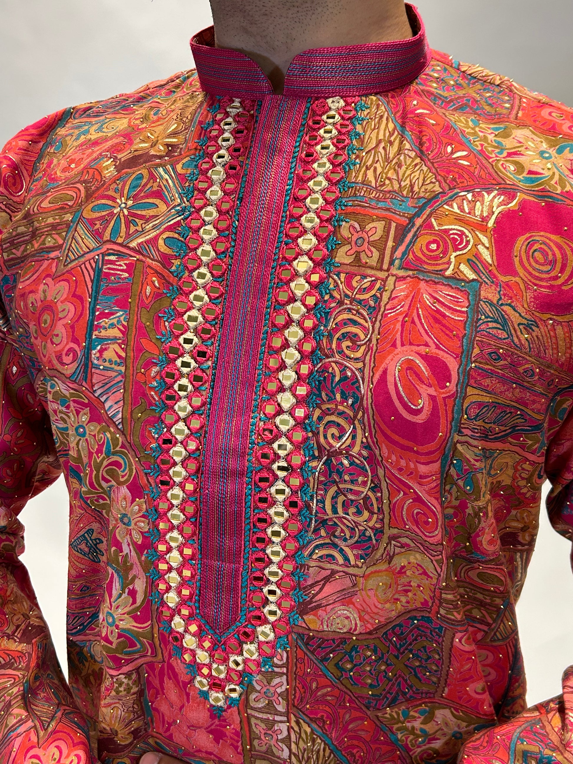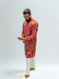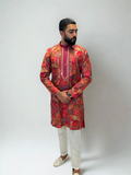 This kurta set is a vibrant tribute to Indian craft — colorful, confident, and full of character for the man who loves to stand out.
