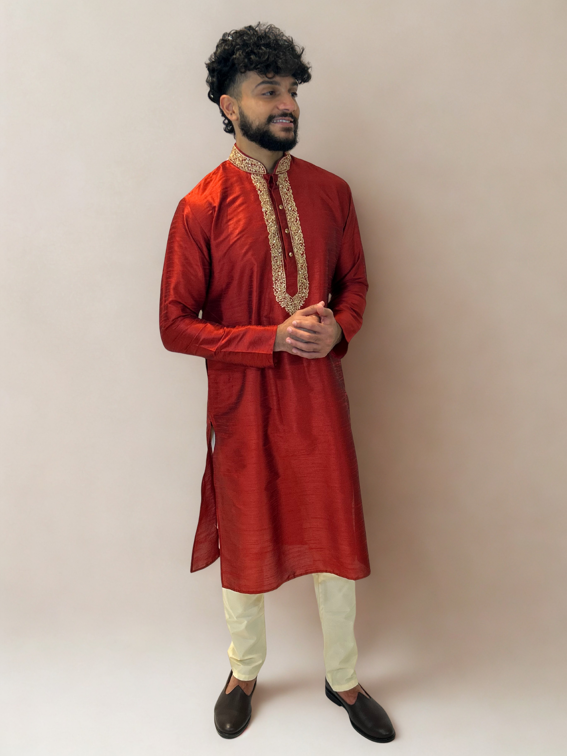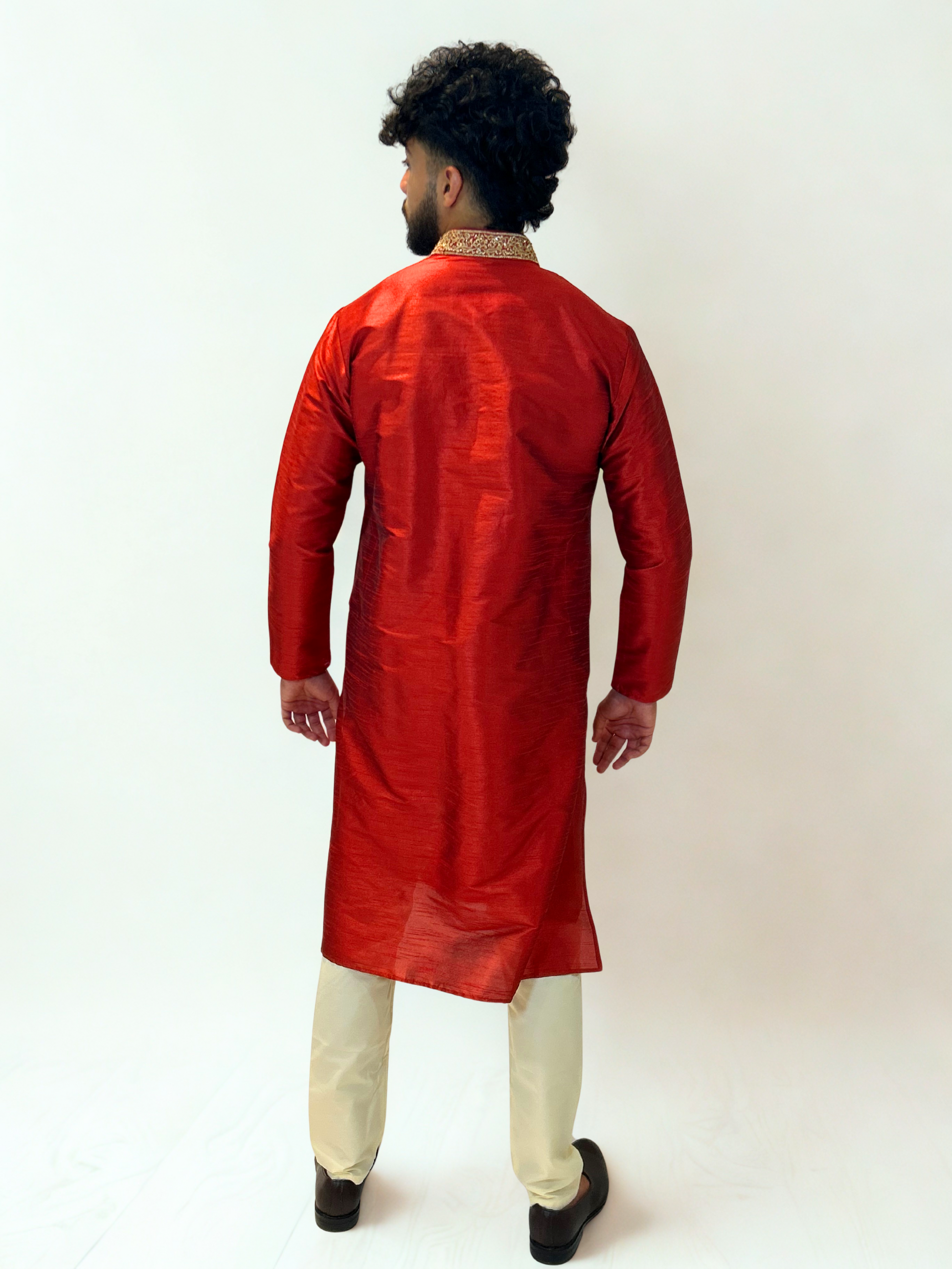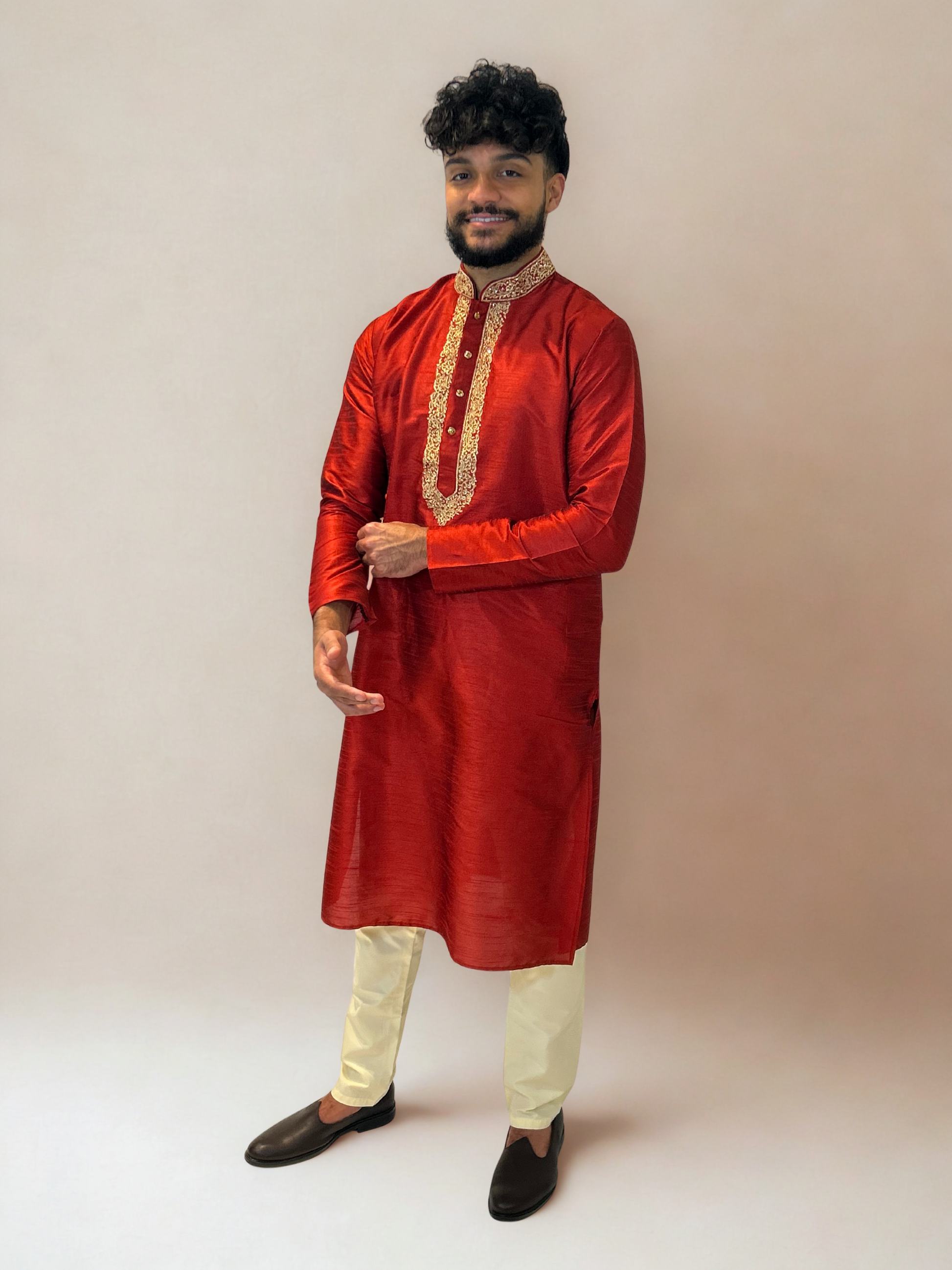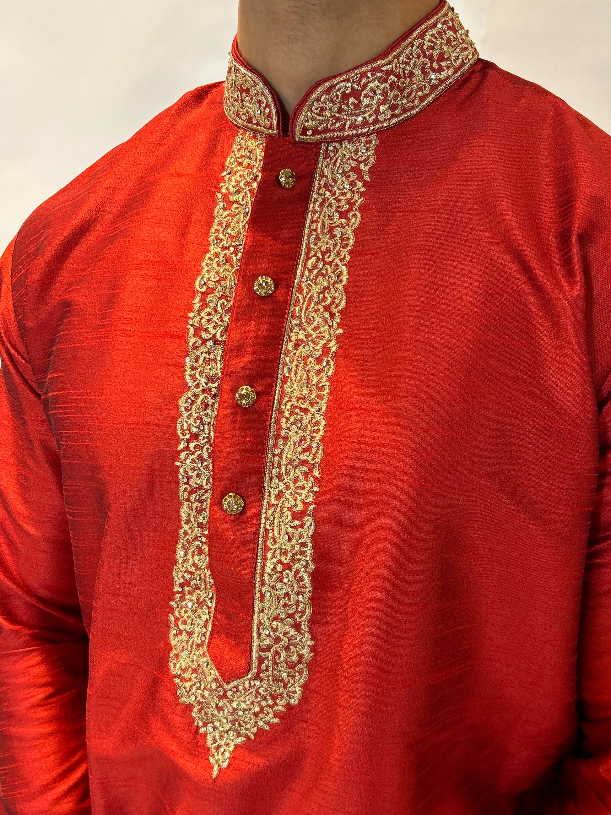 Red and Gold Embroidered Kurta Set