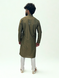 The Mehndi Green Mirror Embroidered Kurta Set captures earthy elegance with a touch of celebration. Crafted in a rich mehndi green tone, this kurta features intricate mirror work and tonal thread embroidery that add depth, shimmer, and festive refinement to every detail.