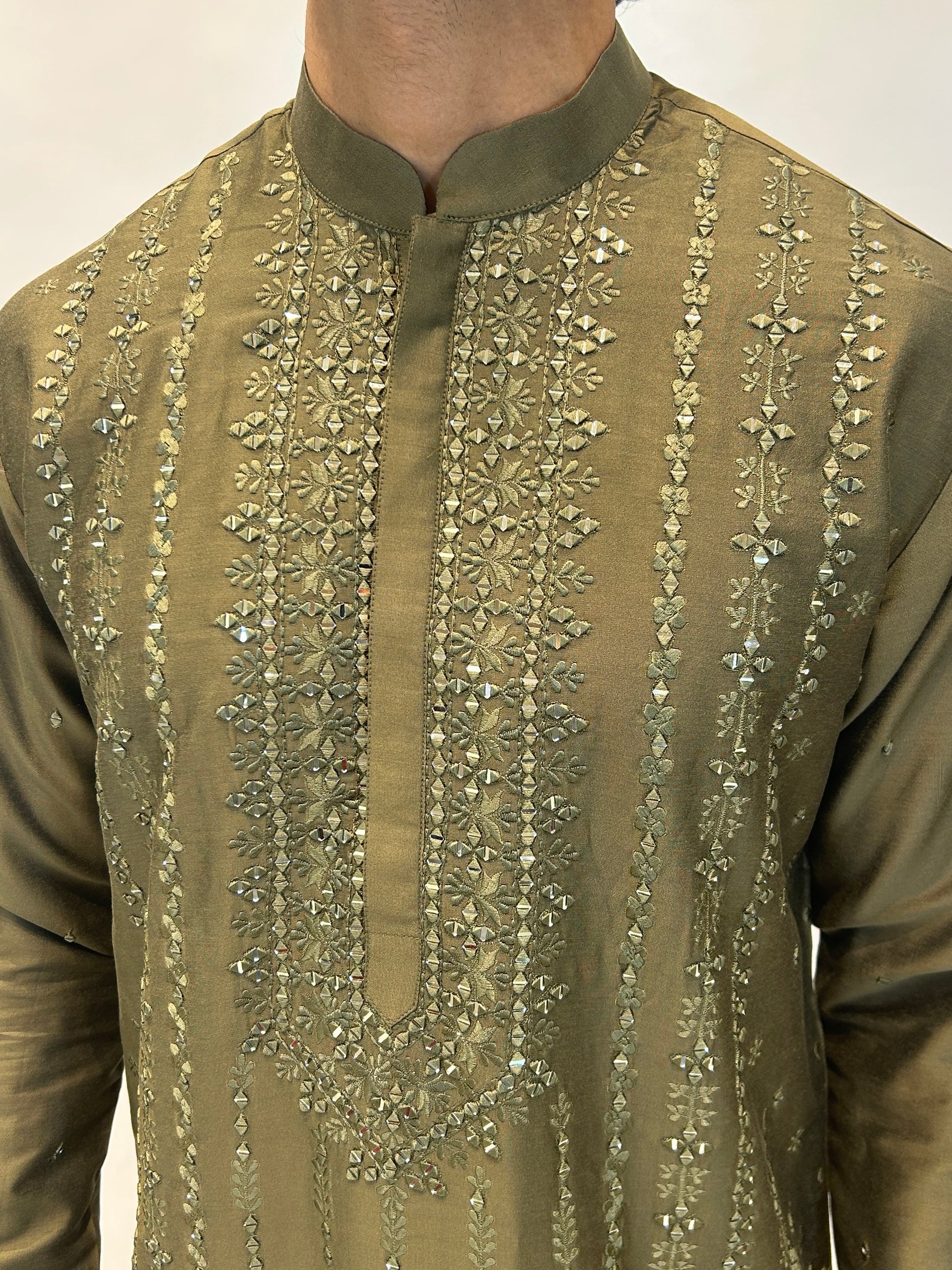 Mehndi Green Mirror Embroidered Kurta Set