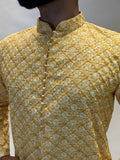 Yellow & Mustard Printed Embroidered Kurta Set